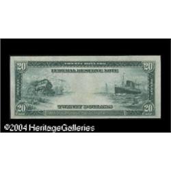 Fr. 1004 $20 1914 Federal Reserve Note Choice New. Thi <B>Fr. 1004 $20 1914 Federal Reserve Note Choice New.</B></I> This Dallas Twenty has huge margins and terrific color. It's a really rare note, with a census of fewer than 20. Surprisingly, it's the thirteenth example we've sold. This is one of only two or three uncirculated examples known. <BR><BR><B>Important notice:</B> Heritage usually auctions material at the rate of 200-250 lots per hour. On some occasions eBay Live bid software or the Internet may not be able to keep up with the pace of the auction. We recommend placing a realistic absentee bid now as insurance to avoid disappointment. Occasionally the auctioneer may eliminate or reject an eBay Live bid, and the auctioneer may also reopen a lot after the close of the eBay live bidding (usually because we missed an audience bid), and may reject your bid even if it shows you as the winning bidder. By bidding via eBay Live, you agree that Heritage may award the lot to another bidder at its sole discretion under the circumstances described above or any other reasonable circumstances. Since eBay bids are not shown to us until we open the lot on the floor, we treat those bids just like floor bids. In most cases the floor responds before the eBay bid is presented to us, due to Internet lag time, so for consistency we have made it a policy that floor bids are always considered first over tie eBay live bids. Also please note that all Heritage lots purchased through eBay Live carry a 20% Buyer's Premium. Please make sure you read the Terms and Conditions before you bid. This lot is being auctioned in conjunction with a live floor auction by Heritage Galleries & Auctioneers. All final auction and invoice information will be supplied by Heritage Galleries & Auctioneers, and all other information should be considered preliminary. Lot:17748
