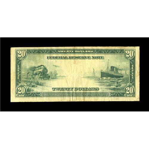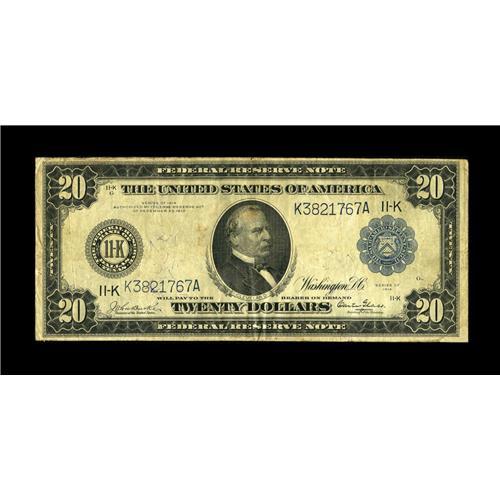 <B>Fr. 1005 $20 1914 Federal Reserve Note Fine.</B></I> This Dallas Burke-Glass twenty is an extremely rare note in all grades, as the new census shows just seven examples reported to date. With the demand for better Friedberg numbers continuing unabated, expect to see some strong bidding before the hammer falls on this lot tonight.<BR><BR><b>Shipping:</b> Coin/Currency (<a target="_blank" href="http://www.heritageauctions.com/common/shipping.php">view shipping information</a>)