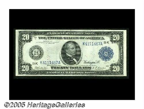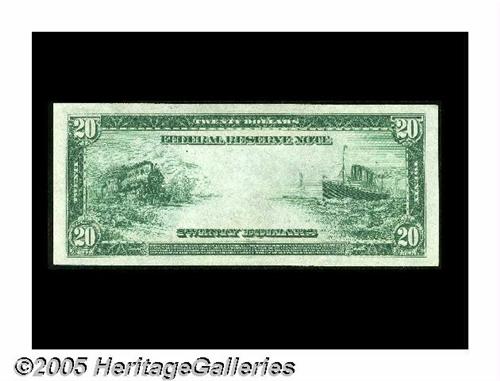 <B>Fr. 1006 $20 1914 Federal Reserve Note Extremely Fine.</B></I> Embossing is prevalent on this handsome scarce Dallas $20 that exhibits light handling under close scrutiny.