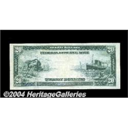 Fr. 1006 $20 1914 Federal Reserve Note Extremely Fine. A beautiful example of a rare number, with bright color, broad margins and great eye appeal. Prior to selling this terrific collection, we had handled only five examples of this number in all our sales combined. <BR><BR><B>Important notice:</B> Heritage usually auctions material at the rate of 200-250 lots per hour. On some occasions eBay Live bid software or the Internet may not be able to keep up with the pace of the auction. We recommend placing a realistic absentee bid now as insurance to avoid disappointment. Occasionally the auctioneer may eliminate or reject an eBay Live bid, and the auctioneer may also reopen a lot after the close of the eBay live bidding (usually because we missed an audience bid), and may reject your bid even if it shows you as the winning bidder. By bidding via eBay Live, you agree that Heritage may award the lot to another bidder at its sole discretion under the circumstances described above or any other reasonable circumstances. Since eBay bids are not shown to us until we open the lot on the floor, we treat those bids just like floor bids. In most cases the floor responds before the eBay bid is presented to us, due to Internet lag time, so for consistency we have made it a policy that floor bids are always considered first over tie eBay live bids. Also please note that all Heritage lots purchased through eBay Live carry a 20% Buyer's Premium. Please make sure you read the Terms and Conditions before you bid. <BR><BR><B>IMPORTANT ANNOUNCEMENT ABOUT RESERVES:</B> Heritage now divulges all reserves on its web site 7 days before every auction. If you want to know whether the reserve on this lot has been met, and if not, what the reserve amount is, please visit this lot page on the HeritageCoin.com web site, or email: bid@HeritageGalleries.com