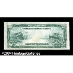 Fr. 1007 $20 1914 Federal Reserve Note Superb Gem New. <B>Fr. 1007 $20 1914 Federal Reserve Note Superb Gem New.</B></I> A scarcer Dallas district $20 Fed with what has got to be the finest centering and largest margins we've ever seen on this type. The colors are excellent as are the paper surfaces, and the note has all the eye appeal in the world due in large part to the uncanny boardwalk margins. A note that should realize in the $800 range, but if this note catches the eye of two determined bidders, it could reach four figures. <BR><BR><B>Important notice:</B> Heritage usually auctions material at the rate of 200-250 lots per hour. On some occasions eBay Live bid software or the Internet may not be able to keep up with the pace of the auction. We recommend placing a realistic absentee bid now as insurance to avoid disappointment. Occasionally the auctioneer may eliminate or reject an eBay Live bid, and the auctioneer may also reopen a lot after the close of the eBay live bidding (usually because we missed an audience bid), and may reject your bid even if it shows you as the winning bidder. By bidding via eBay Live, you agree that Heritage may award the lot to another bidder at its sole discretion under the circumstances described above or any other reasonable circumstances. Since eBay bids are not shown to us until we open the lot on the floor, we treat those bids just like floor bids. In most cases the floor responds before the eBay bid is presented to us, due to Internet lag time, so for consistency we have made it a policy that floor bids are always considered first over tie eBay live bids. Also please note that all Heritage lots purchased through eBay Live carry a 20% Buyer's Premium. Please make sure you read the Terms and Conditions before you bid. This lot is being auctioned in conjunction with a live floor auction by Heritage Galleries & Auctioneers. All final auction and invoice information will be supplied by Heritage Galleries & Auctioneers, and all other information should be considered preliminary. Lot:17750