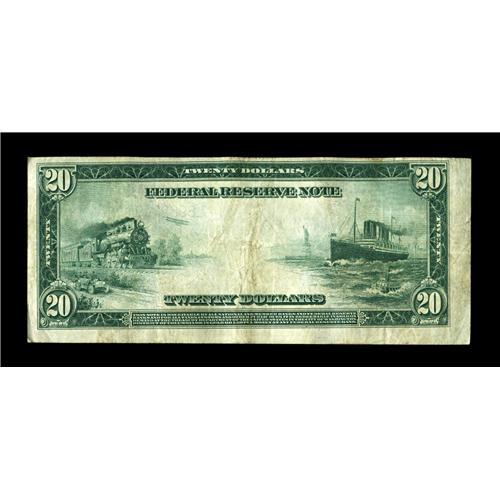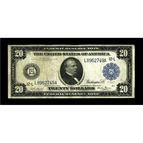 <B>Fr. 1009 $20 1914 Federal Reserve Note Fine+.</B></I> This is a scarcer note from San francisco that carries the elusive Burke/Glass signature combination.<BR><BR><b>Shipping:</b> Coin/Currency (<a target="_blank" href="http://www.heritageauctions.com/common/shipping.php">view shipping information</a>)
