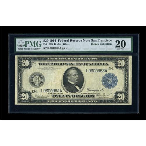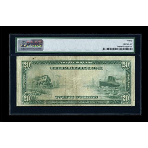 <B>Fr. 1009 $20 1914 Federal Reserve Note PMG Very Fine 20.</B></I> This is one of only 30 notes in the census for this Friedberg number. On average, we see about one of these a year in our auctions.<BR><BR><b>Shipping:</b> Coins & Currency (<a target="_blank" href="http://www.heritageauctions.com/common/shipping.php">view shipping information</a>)