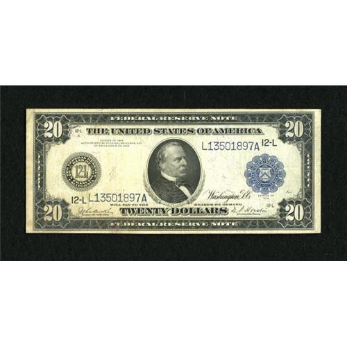 Fr. 1010 $20 1914 Federal Reserve Note Fine.