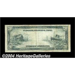 Fr. 1011a $20 1914 Federal Reserve Note Fine. A defect-free example. <BR><BR><B>Important notice:</B> Heritage usually auctions material at the rate of 200-250 lots per hour. On some occasions eBay Live bid software or the Internet may not be able to keep up with the pace of the auction. We recommend placing a realistic absentee bid now as insurance to avoid disappointment. Occasionally the auctioneer may eliminate or reject an eBay Live bid, and the auctioneer may also reopen a lot after the close of the eBay live bidding (usually because we missed an audience bid), and may reject your bid even if it shows you as the winning bidder. By bidding via eBay Live, you agree that Heritage may award the lot to another bidder at its sole discretion under the circumstances described above or any other reasonable circumstances. Since eBay bids are not shown to us until we open the lot on the floor, we treat those bids just like floor bids. In most cases the floor responds before the eBay bid is presented to us, due to Internet lag time, so for consistency we have made it a policy that floor bids are always considered first over tie eBay live bids. Also please note that all Heritage lots purchased through eBay Live carry a 20% Buyer's Premium. Please make sure you read the Terms and Conditions before you bid. <BR><BR><B>IMPORTANT ANNOUNCEMENT ABOUT RESERVES:</B> Heritage now divulges all reserves on its web site 7 days before every auction. If you want to know whether the reserve on this lot has been met, and if not, what the reserve amount is, please visit this lot page on the HeritageCoin.com web site, or email: bid@HeritageGalleries.com
