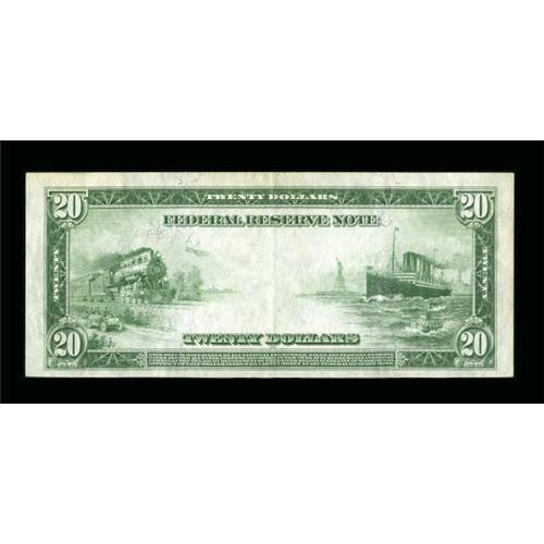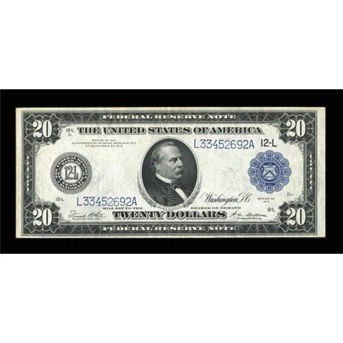 <B>Fr. 1011b $20 1914 Federal Reserve Note Extremely Fine-About Uncirculated.</B></I> Although this is not a terribly scarce number, fewer than a half dozen high grade examples are listed in the census. This piece, which is bright and shows barely any traces of circulation, is far closer to the higher grade here than the lower. <BR><BR><b>Shipping:</b> Coins & Currency (<a target="_blank" href="http://www.heritageauctions.com/common/shipping.php">view shipping information</a>)