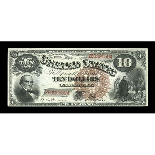 <B>Fr. 102 $10 1880 Legal Tender Very Choice New.</B></I> A Superb Gem save for a somewhat tight bottom margin. The note has wonderful original embossing, ideal colors and great eye appeal. It was acquired by our consignor from Hollinbeck in July of 1958.