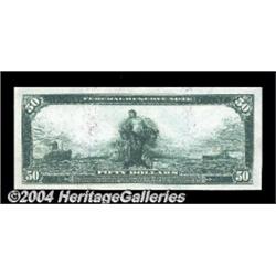 Fr. 1025 $50 1914 Federal Reserve Note Choice New. Nice, even margins, good paper quality and a very nice overall appearance. This is only the second example of this number that CAA has handled, although the census stands at just over a dozen. <BR><BR><B>Important notice:</B> Heritage usually auctions material at the rate of 200-250 lots per hour. On some occasions eBay Live bid software or the Internet may not be able to keep up with the pace of the auction. We recommend placing a realistic absentee bid now as insurance to avoid disappointment. Occasionally the auctioneer may eliminate or reject an eBay Live bid, and the auctioneer may also reopen a lot after the close of the eBay live bidding (usually because we missed an audience bid), and may reject your bid even if it shows you as the winning bidder. By bidding via eBay Live, you agree that Heritage may award the lot to another bidder at its sole discretion under the circumstances described above or any other reasonable circumstances. Since eBay bids are not shown to us until we open the lot on the floor, we treat those bids just like floor bids. In most cases the floor responds before the eBay bid is presented to us, due to Internet lag time, so for consistency we have made it a policy that floor bids are always considered first over tie eBay live bids. Also please note that all Heritage lots purchased through eBay Live carry a 20% Buyer's Premium. Please make sure you read the Terms and Conditions before you bid. <BR><BR><B>IMPORTANT ANNOUNCEMENT ABOUT RESERVES:</B> Heritage now divulges all reserves on its web site 7 days before every auction. If you want to know whether the reserve on this lot has been met, and if not, what the reserve amount is, please visit this lot page on the HeritageCoin.com web site, or email: bid@HeritageGalleries.com
