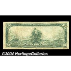 Fr. 1028 $50 1914 Federal Reserve Note Fine. This is only the seventh example that we have had to offer. It's problem-free for the grade, and worth a bid in the area of . . . <BR><BR><B>Important notice:</B> Heritage usually auctions material at the rate of 200-250 lots per hour. On some occasions eBay Live bid software or the Internet may not be able to keep up with the pace of the auction. We recommend placing a realistic absentee bid now as insurance to avoid disappointment. Occasionally the auctioneer may eliminate or reject an eBay Live bid, and the auctioneer may also reopen a lot after the close of the eBay live bidding (usually because we missed an audience bid), and may reject your bid even if it shows you as the winning bidder. By bidding via eBay Live, you agree that Heritage may award the lot to another bidder at its sole discretion under the circumstances described above or any other reasonable circumstances. Since eBay bids are not shown to us until we open the lot on the floor, we treat those bids just like floor bids. In most cases the floor responds before the eBay bid is presented to us, due to Internet lag time, so for consistency we have made it a policy that floor bids are always considered first over tie eBay live bids. Also please note that all Heritage lots purchased through eBay Live carry a 20% Buyer's Premium. Please make sure you read the Terms and Conditions before you bid. <BR><BR><B>IMPORTANT ANNOUNCEMENT ABOUT RESERVES:</B> Heritage now divulges all reserves on its web site 7 days before every auction. If you want to know whether the reserve on this lot has been met, and if not, what the reserve amount is, please visit this lot page on the HeritageCoin.com web site, or email: bid@HeritageGalleries.com