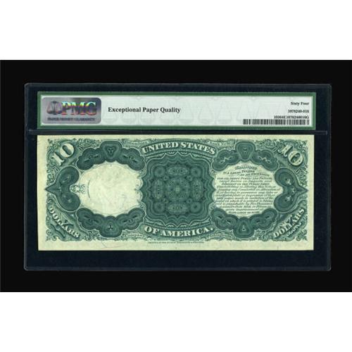 <B>Fr. 103 $10 1880 Legal Tender PMG Choice Uncirculated 64 EPQ.</B></I> From an old time collection, this Jackass exudes those original qualities important today. Nice margins engulf strongly embossed surfaces that are dripping with fresh ink that looks as it did on the day it was printed. <B><BR></B></I><I>From The Warren Marshall Collection</B></I><BR><BR><b>Shipping:</b> Coins & Currency (<a target="_blank" href="http://www.heritageauctions.com/common/shipping.php">view shipping information</a>)