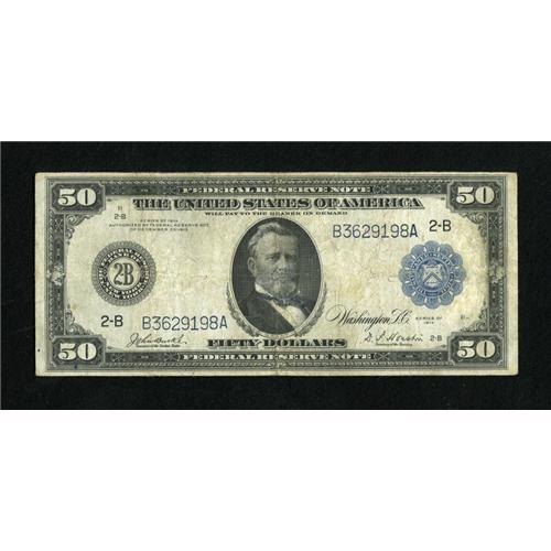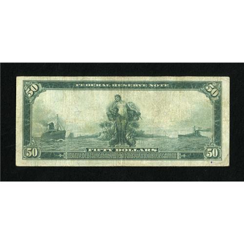 <B>Fr. 1030 $50 1914 Federal Reserve Note Fine.</B></I> An especially attractive $50 for the grade. Large size FRN's are becoming more popular with new collectors entering the market.<BR><BR><b>Shipping:</b> Coins & Currency (<a target="_blank" href="http://www.heritageauctions.com/common/shipping.php">view shipping information</a>)