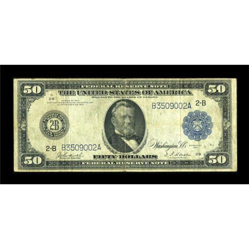 <B>Fr. 1030 $50 1914 Federal Reserve Note Fine-Very Fine.</B></I> Evenly circulated and problem-free.<BR><BR><b>Shipping:</b> Coins & Currency (<a target="_blank" href="http://www.heritageauctions.com/common/shipping.php">view shipping information</a>)