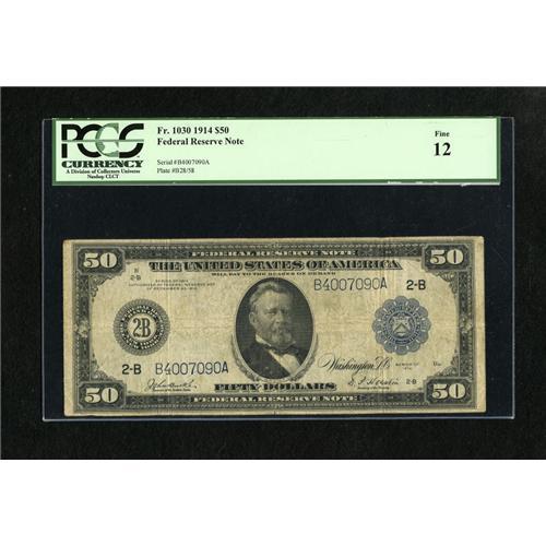 Fr. 1030 $50 1914 Federal Reserve Note PCGS Fine