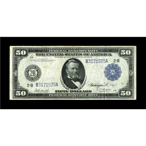<B>Fr. 1030 $50 1914 Federal Reserve Note Very Fine.</B></I> Healthy edges and paper are found on this original $50.<BR><BR><b>Shipping:</b> Coin/Currency (<a target="_blank" href="http://www.heritageauctions.com/common/shipping.php">view shipping information</a>)