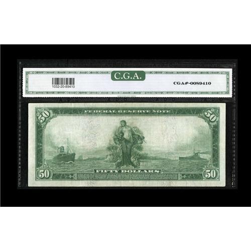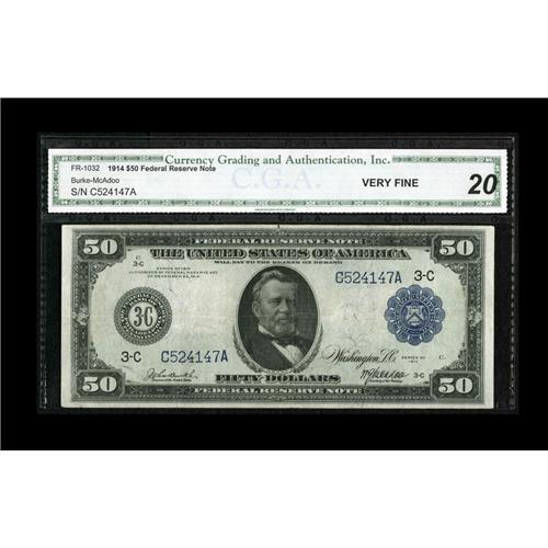 <B>Fr. 1032 $50 1914 Federal Reserve Note CGA Very Fine 20.</B></I> This Philly Fifty retains bold color.