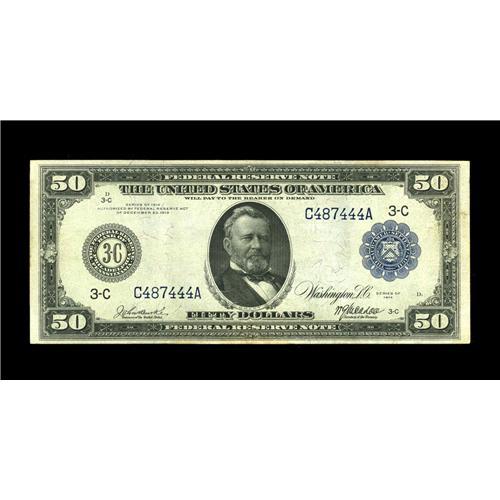 Fr. 1032 $50 1914 Federal Reserve Note Very Fine. Fewer Fr. 1032 $50 1914 Federal Reserve Note Very