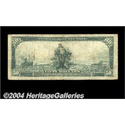 Fr. 1034 $50 1914 Federal Reserve Note Very Good-Fine. One of the more common Fifties, with about 30 examples known. A decent affordable type note. <BR><BR><B>Important notice:</B> Heritage usually auctions material at the rate of 200-250 lots per hour. On some occasions eBay Live bid software or the Internet may not be able to keep up with the pace of the auction. We recommend placing a realistic absentee bid now as insurance to avoid disappointment. Occasionally the auctioneer may eliminate or reject an eBay Live bid, and the auctioneer may also reopen a lot after the close of the eBay live bidding (usually because we missed an audience bid), and may reject your bid even if it shows you as the winning bidder. By bidding via eBay Live, you agree that Heritage may award the lot to another bidder at its sole discretion under the circumstances described above or any other reasonable circumstances. Since eBay bids are not shown to us until we open the lot on the floor, we treat those bids just like floor bids. In most cases the floor responds before the eBay bid is presented to us, due to Internet lag time, so for consistency we have made it a policy that floor bids are always considered first over tie eBay live bids. Also please note that all Heritage lots purchased through eBay Live carry a 20% Buyer's Premium. Please make sure you read the Terms and Conditions before you bid. <BR><BR><B>IMPORTANT ANNOUNCEMENT ABOUT RESERVES:</B> Heritage now divulges all reserves on its web site 7 days before every auction. If you want to know whether the reserve on this lot has been met, and if not, what the reserve amount is, please visit this lot page on the HeritageCoin.com web site, or email: bid@HeritageGalleries.com