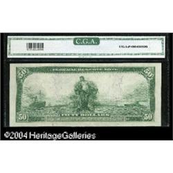 Fr. 1035 $50 1914 Federal Reserve Note Fine, notch. The <B>Fr. 1035 $50 1914 Federal Reserve Note CGA Gem New 65.</B></I> Fifty dollar Feds in this state of preservation are seldom seen. The particular example we offer tonight enjoys superior eye appeal and gives every indication of being as fresh and snappy as the day it left the BEP presses. The Fr. 1035 is the most available of the Fifty Dollar Feds and this lovely example is an ideal representative of the type. <BR><BR><B>Important notice:</B> Heritage usually auctions material at the rate of 200-250 lots per hour. On some occasions eBay Live bid software or the Internet may not be able to keep up with the pace of the auction. We recommend placing a realistic absentee bid now as insurance to avoid disappointment. Occasionally the auctioneer may eliminate or reject an eBay Live bid, and the auctioneer may also reopen a lot after the close of the eBay live bidding (usually because we missed an audience bid), and may reject your bid even if it shows you as the winning bidder. By bidding via eBay Live, you agree that Heritage may award the lot to another bidder at its sole discretion under the circumstances described above or any other reasonable circumstances. Since eBay bids are not shown to us until we open the lot on the floor, we treat those bids just like floor bids. In most cases the floor responds before the eBay bid is presented to us, due to Internet lag time, so for consistency we have made it a policy that floor bids are always considered first over tie eBay live bids. Also please note that all Heritage lots purchased through eBay Live carry a 20% Buyer's Premium. Please make sure you read the Terms and Conditions before you bid. This lot is being auctioned in conjunction with a live floor auction by Heritage Galleries & Auctioneers. All final auction and invoice information will be supplied by Heritage Galleries & Auctioneers, and all other information should be considered preliminary. Lot:17758