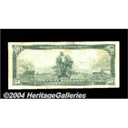 Fr. 1035 $50 1914 Federal Reserve Note Very Fine. One of the more common Fifties, with a census just over 75. <BR><BR><B>Important notice:</B> Heritage usually auctions material at the rate of 200-250 lots per hour. On some occasions eBay Live bid software or the Internet may not be able to keep up with the pace of the auction. We recommend placing a realistic absentee bid now as insurance to avoid disappointment. Occasionally the auctioneer may eliminate or reject an eBay Live bid, and the auctioneer may also reopen a lot after the close of the eBay live bidding (usually because we missed an audience bid), and may reject your bid even if it shows you as the winning bidder. By bidding via eBay Live, you agree that Heritage may award the lot to another bidder at its sole discretion under the circumstances described above or any other reasonable circumstances. Since eBay bids are not shown to us until we open the lot on the floor, we treat those bids just like floor bids. In most cases the floor responds before the eBay bid is presented to us, due to Internet lag time, so for consistency we have made it a policy that floor bids are always considered first over tie eBay live bids. Also please note that all Heritage lots purchased through eBay Live carry a 20% Buyer's Premium. Please make sure you read the Terms and Conditions before you bid. <BR><BR><B>IMPORTANT ANNOUNCEMENT ABOUT RESERVES:</B> Heritage now divulges all reserves on its web site 7 days before every auction. If you want to know whether the reserve on this lot has been met, and if not, what the reserve amount is, please visit this lot page on the HeritageCoin.com web site, or email: bid@HeritageGalleries.com