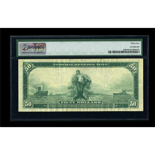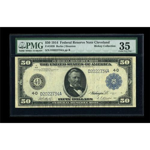 <B>Fr. 1038 $50 1914 Federal Reserve Note PMG Choice Very Fine 35.</B></I> An attractive and original Burke-Houston example.<BR><BR><b>Shipping:</b> Coins & Currency (<a target="_blank" href="http://www.heritageauctions.com/common/shipping.php">view shipping information</a>)