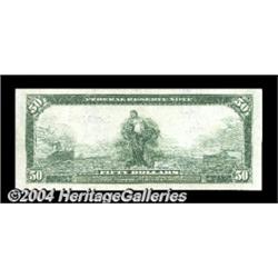 Fr. 1039a $50 1914 Federal Reserve Note Very Choice New. One of the more common Fifty Dollar Feds, but a standout example with nice margins, terrific color, and strong eye appeal. <BR><BR><B>Important notice:</B> Heritage usually auctions material at the rate of 200-250 lots per hour. On some occasions eBay Live bid software or the Internet may not be able to keep up with the pace of the auction. We recommend placing a realistic absentee bid now as insurance to avoid disappointment. Occasionally the auctioneer may eliminate or reject an eBay Live bid, and the auctioneer may also reopen a lot after the close of the eBay live bidding (usually because we missed an audience bid), and may reject your bid even if it shows you as the winning bidder. By bidding via eBay Live, you agree that Heritage may award the lot to another bidder at its sole discretion under the circumstances described above or any other reasonable circumstances. Since eBay bids are not shown to us until we open the lot on the floor, we treat those bids just like floor bids. In most cases the floor responds before the eBay bid is presented to us, due to Internet lag time, so for consistency we have made it a policy that floor bids are always considered first over tie eBay live bids. Also please note that all Heritage lots purchased through eBay Live carry a 20% Buyer's Premium. Please make sure you read the Terms and Conditions before you bid. <BR><BR><B>IMPORTANT ANNOUNCEMENT ABOUT RESERVES:</B> Heritage now divulges all reserves on its web site 7 days before every auction. If you want to know whether the reserve on this lot has been met, and if not, what the reserve amount is, please visit this lot page on the HeritageCoin.com web site, or email: bid@HeritageGalleries.com