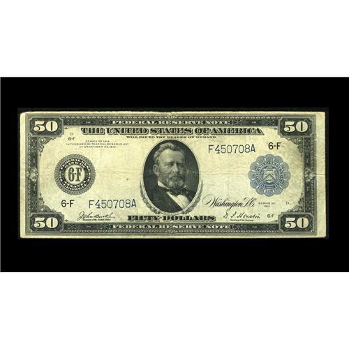 <B>Fr. 1046 $50 1914 Federal Reserve Note Fine.</B></I>A nice collector grade example of a denomination that has become increasingly popular within the collecting fraternity.