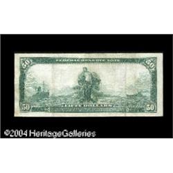 Fr. 1048 $50 1914 Federal Reserve Note Very Fine. A <B>Fr. 1048 $50 1914 Federal Reserve Note Very Fine.</B></I> A nice problem-free Chicago Fifty Dollar Fed. <BR><BR><B>Important notice:</B> Heritage usually auctions material at the rate of 200-250 lots per hour. On some occasions eBay Live bid software or the Internet may not be able to keep up with the pace of the auction. We recommend placing a realistic absentee bid now as insurance to avoid disappointment. Occasionally the auctioneer may eliminate or reject an eBay Live bid, and the auctioneer may also reopen a lot after the close of the eBay live bidding (usually because we missed an audience bid), and may reject your bid even if it shows you as the winning bidder. By bidding via eBay Live, you agree that Heritage may award the lot to another bidder at its sole discretion under the circumstances described above or any other reasonable circumstances. Since eBay bids are not shown to us until we open the lot on the floor, we treat those bids just like floor bids. In most cases the floor responds before the eBay bid is presented to us, due to Internet lag time, so for consistency we have made it a policy that floor bids are always considered first over tie eBay live bids. Also please note that all Heritage lots purchased through eBay Live carry a 20% Buyer's Premium. Please make sure you read the Terms and Conditions before you bid. This lot is being auctioned in conjunction with a live floor auction by Heritage Galleries & Auctioneers. All final auction and invoice information will be supplied by Heritage Galleries & Auctioneers, and all other information should be considered preliminary. Lot:17763
