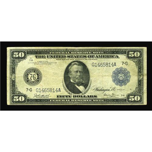 Fr. 1049 $50 1914 Federal Reserve Note Fine. A rather s Fr. 1049 $50 1914 Federal Reserve Note Fine.