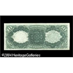 Fr. 105 $10 1880 Legal Tender Very Choice New. This not <B>Fr. 105 $10 1880 Legal Tender Very Choice New.</B></I> This note is one of only five uncirculated 105's known in spite of a total population in the mid-thirties. The note has previously sold as a "super Gem," but in our opinion the top margin is just a hair too close at the left end for the Gem grade. The note is spectacularly bright, with absolutely ideal color, good paper surfaces and incomparable eye appeal. Both 104 and 105 are rare in all grades, and prohibitively rare in uncirculated. Were it not for a decent group of 103's in top grade, this type would be nearly unavailable. <BR><BR><B>Important notice:</B> Heritage usually auctions material at the rate of 200-250 lots per hour. On some occasions eBay Live bid software or the Internet may not be able to keep up with the pace of the auction. We recommend placing a realistic absentee bid now as insurance to avoid disappointment. Occasionally the auctioneer may eliminate or reject an eBay Live bid, and the auctioneer may also reopen a lot after the close of the eBay live bidding (usually because we missed an audience bid), and may reject your bid even if it shows you as the winning bidder. By bidding via eBay Live, you agree that Heritage may award the lot to another bidder at its sole discretion under the circumstances described above or any other reasonable circumstances. Since eBay bids are not shown to us until we open the lot on the floor, we treat those bids just like floor bids. In most cases the floor responds before the eBay bid is presented to us, due to Internet lag time, so for consistency we have made it a policy that floor bids are always considered first over tie eBay live bids. Also please note that all Heritage lots purchased through eBay Live carry a 20% Buyer's Premium. Please make sure you read the Terms and Conditions before you bid. This lot is being auctioned in conjunction with a live floor auction by Heritage Galleries & Auctioneers. All final auction and invoice information will be supplied by Heritage Galleries & Auctioneers, and all other information should be considered preliminary. Lot:16964