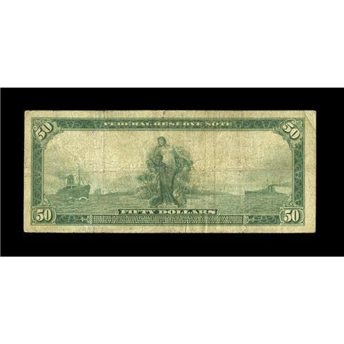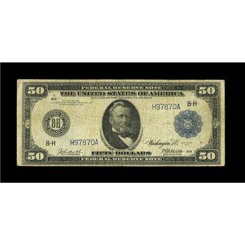 <B>Fr. 1052 $50 1914 Federal Reserve Note Very Good+.</B></I> Very colorful surfaces are still exhibited on this elusive St. Louis issue.<BR><BR><b>Shipping:</b> Coin/Currency (<a target="_blank" href="http://www.heritageauctions.com/common/shipping.php">view shipping information</a>)