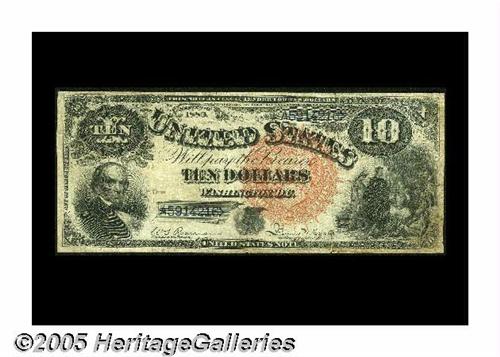 <B>Fr. 106 $10 1880 Legal Tender Fine.</B></I> A few very minor edge splits are observed, but this $10 Legal has good color remaining for the grade.