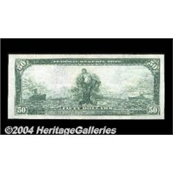 Fr. 1068 $50 1914 Federal Reserve Note Extremely Fine. One of the more common Fifty Dollar Feds, with around 25 examples known, although it's only the sixth that we've handled. It's beautifully bright, and it has retained its original embossing. The note is an uncirculated example that has simply picked up a few very light folds. <BR><BR><B>Important notice:</B> Heritage usually auctions material at the rate of 200-250 lots per hour. On some occasions eBay Live bid software or the Internet may not be able to keep up with the pace of the auction. We recommend placing a realistic absentee bid now as insurance to avoid disappointment. Occasionally the auctioneer may eliminate or reject an eBay Live bid, and the auctioneer may also reopen a lot after the close of the eBay live bidding (usually because we missed an audience bid), and may reject your bid even if it shows you as the winning bidder. By bidding via eBay Live, you agree that Heritage may award the lot to another bidder at its sole discretion under the circumstances described above or any other reasonable circumstances. Since eBay bids are not shown to us until we open the lot on the floor, we treat those bids just like floor bids. In most cases the floor responds before the eBay bid is presented to us, due to Internet lag time, so for consistency we have made it a policy that floor bids are always considered first over tie eBay live bids. Also please note that all Heritage lots purchased through eBay Live carry a 20% Buyer's Premium. Please make sure you read the Terms and Conditions before you bid. <BR><BR><B>IMPORTANT ANNOUNCEMENT ABOUT RESERVES:</B> Heritage now divulges all reserves on its web site 7 days before every auction. If you want to know whether the reserve on this lot has been met, and if not, what the reserve amount is, please visit this lot page on the HeritageCoin.com web site, or email: bid@HeritageGalleries.com
