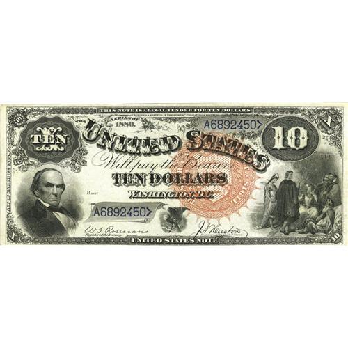 <B>Fr. 107 $10 1880 Legal Tender Extremely Fine.</B></I> The three folds on this note do little to detract from the pleasing print quality and bright red seal. This is a popular type with the "right" look.