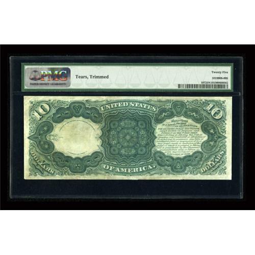 <B>Fr. 107 $10 1880 Legal Tender PMG Very Fine 25 Net.</B></I> The third-party label informs us that the note has been trimmed to remove stains and/or tears.<BR><BR><b>Shipping:</b> Coins & Currency (<a target="_blank" href="http://www.heritageauctions.com/common/shipping.php">view shipping information</a>)