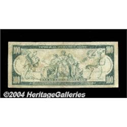 Fr. 1090 $100 1914 Federal Reserve Note Fine. Only about 50 examples of this number are known, and it is quite unlikely that any one of them has as many pinholes as this example. The good news is: every one of them is quite small. <BR><BR><B>Important notice:</B> Heritage usually auctions material at the rate of 200-250 lots per hour. On some occasions eBay Live bid software or the Internet may not be able to keep up with the pace of the auction. We recommend placing a realistic absentee bid now as insurance to avoid disappointment. Occasionally the auctioneer may eliminate or reject an eBay Live bid, and the auctioneer may also reopen a lot after the close of the eBay live bidding (usually because we missed an audience bid), and may reject your bid even if it shows you as the winning bidder. By bidding via eBay Live, you agree that Heritage may award the lot to another bidder at its sole discretion under the circumstances described above or any other reasonable circumstances. Since eBay bids are not shown to us until we open the lot on the floor, we treat those bids just like floor bids. In most cases the floor responds before the eBay bid is presented to us, due to Internet lag time, so for consistency we have made it a policy that floor bids are always considered first over tie eBay live bids. Also please note that all Heritage lots purchased through eBay Live carry a 20% Buyer's Premium. Please make sure you read the Terms and Conditions before you bid. <BR><BR><B>IMPORTANT ANNOUNCEMENT ABOUT RESERVES:</B> Heritage now divulges all reserves on its web site 7 days before every auction. If you want to know whether the reserve on this lot has been met, and if not, what the reserve amount is, please visit this lot page on the HeritageCoin.com web site, or email: bid@HeritageGalleries.com