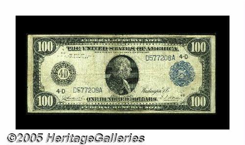 <B>Fr. 1098 $100 1914 Federal Reserve Note Fine.</B></I> Even wear is seen on this Cleveland $100 that still has snap.