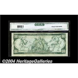 Fr. 1104 $100 1914 Federal Reserve Note CGA Gem New 65. A lovely note, with bright colors, good margins and original embossing that is deep enough to easily discern through the third-party encapsulation. <BR><BR><B>Important notice:</B> Heritage usually auctions material at the rate of 200-250 lots per hour. On some occasions eBay Live bid software or the Internet may not be able to keep up with the pace of the auction. We recommend placing a realistic absentee bid now as insurance to avoid disappointment. Occasionally the auctioneer may eliminate or reject an eBay Live bid, and the auctioneer may also reopen a lot after the close of the eBay live bidding (usually because we missed an audience bid), and may reject your bid even if it shows you as the winning bidder. By bidding via eBay Live, you agree that Heritage may award the lot to another bidder at its sole discretion under the circumstances described above or any other reasonable circumstances. Since eBay bids are not shown to us until we open the lot on the floor, we treat those bids just like floor bids. In most cases the floor responds before the eBay bid is presented to us, due to Internet lag time, so for consistency we have made it a policy that floor bids are always considered first over tie eBay live bids. Also please note that all Heritage lots purchased through eBay Live carry a 20% Buyer's Premium. Please make sure you read the Terms and Conditions before you bid. <BR><BR><B>IMPORTANT ANNOUNCEMENT ABOUT RESERVES:</B> Heritage now divulges all reserves on its web site 7 days before every auction. If you want to know whether the reserve on this lot has been met, and if not, what the reserve amount is, please visit this lot page on the HeritageCoin.com web site, or email: bid@HeritageGalleries.com