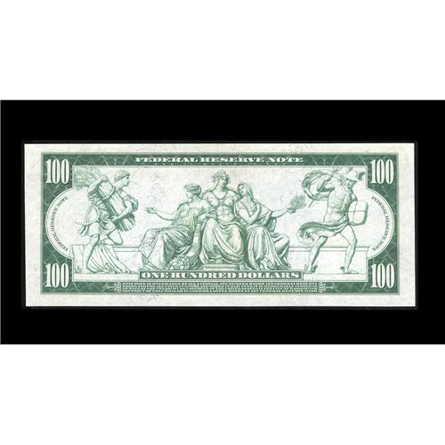 <B>Fr. 1104 $100 1914 Federal Reserve Note Gem New.</B></I> Hugely margined, with ideal paper and ink color. Both sides are beautifully centered, and this Hundred Dollar Fed has eye appeal the equal of any we've seen.