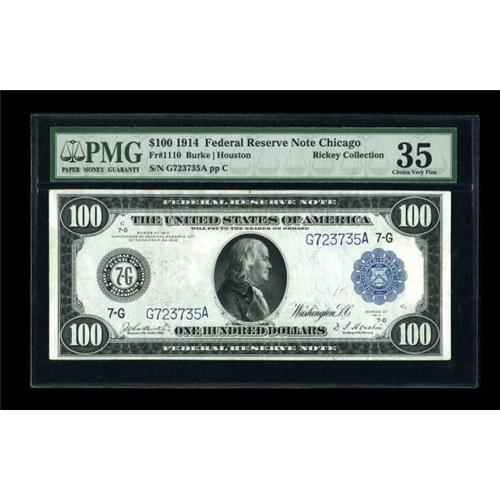 <B>Fr. 1110 $100 1914 Federal Reserve Note PMG Choice Very Fine 35.</B></I> The few folds that account for the grade do not interrupt the design. <BR><BR><b>Shipping:</b> Coins & Currency (<a target="_blank" href="http://www.heritageauctions.com/common/shipping.php">view shipping information</a>)
