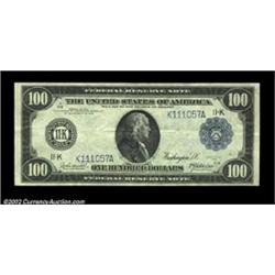 Fr. 1124 $100 1914 Federal Reserve Note Extremely Fine. A very nice circulated C-Note from the Dallas district, with just a horizontal fold and a little handling that keep it from a higher grade. Only 17 Fr. 1124s are listed in the census. Important notice: We expect to be auctioning lots at the rate of 200-250 per hour. Sometimes eBay Premier live bid software cannot keep up with that pace, so we strongly recommend that you place a realistic proxy bid now as insurance to avoid disappointment. Also please note that all Heritage/CAA lots purchased through eBay Premier carry a 20% Buyer's Premium. Please make sure you read the Terms and Conditions.