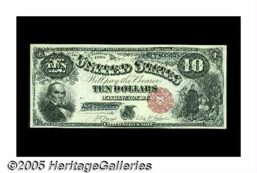 <B>Fr. 113 $10 1880 Legal Tender Choice About New.</B></I> At first glance this $10 Legal appears uncirculated. Further observation reveals a light center fold on this note that has acute corners, nice color and lots of eye appeal.