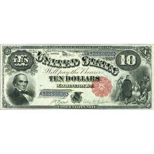 <B>Fr. 113 $10 1880 Legal Tender Extremely Fine-About New.</B></I> Here is the first in a trio of pleasing high mid-grade consecutive examples. Soft vertical folds traverse the original surfaces.