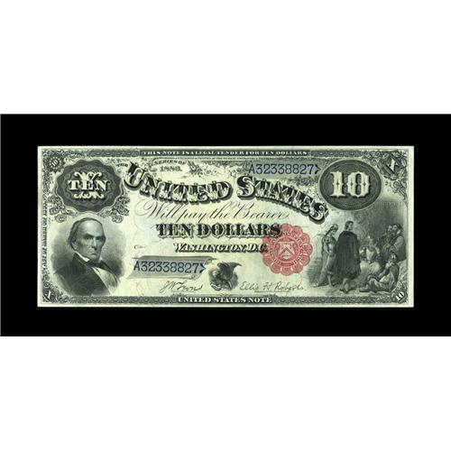<B>Fr. 113 $10 1880 Legal Tender Extremely Fine-About New.</B></I> This second example which faces up Gem has soft vertical folds with plenty of embossing still present.