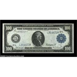 Fr. 1130 $100 1914 Federal Reserve Note Choice About New. This San Francisco $100 Fed has huge margins and terrific eye appeal. There is a single, extremely light, easily overlooked center fold, but this note has considerably more value than the typical About New example. Scarce and attractive. Important notice: We expect to be auctioning lots at the rate of 200-250 per hour. Sometimes eBay Premier live bid software cannot keep up with that pace, so we strongly recommend that you place a realistic proxy bid now as insurance to avoid disappointment. Also please note that all Heritage/CAA lots purchased through eBay Premier carry a 20% Buyer's Premium. Please make sure you read the Terms and Conditions.