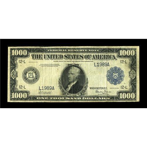 <B>Fr. 1133-L $1000 1918 Federal Reserve Note Fine+.</B></I> This is very similar in appearance to the note which sold in our September 2006 Long Beach auction for over $18,000. This note is bright for the grade and has retained considerable eye appeal. Even at current price levels, these rare items are still remarkably inexpensive relative to their true scarcity, a situation which likely will not last forever.<BR><BR><b>Shipping:</b> Coins & Currency (<a target="_blank" href="http://www.heritageauctions.com/common/shipping.php">view shipping information</a>)