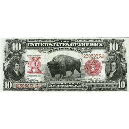 <B>Fr. 114 $10 1901 Legal Tender Choice Extremely Fine.</B></I> The extent of this note's service in circulation was to be folded up into a wallet or purse and perhaps never used. This note is clearly new save for the three folds that account for the grade. The paper is still perfectly original and the embossing deep.<BR><I>From The Plymouth Rock Collection</B></I>