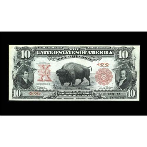 <B>Fr. 114 $10 1901 Legal Tender Extremely Fine.</B></I> This three-digit Bison has great paper originality, deep embossing and excellent margins. It would be an ideal example of its grade save for some minor fading of the red overprint. The fading, as is often the case, affects only the seal and large red "X," not the serial numbers.