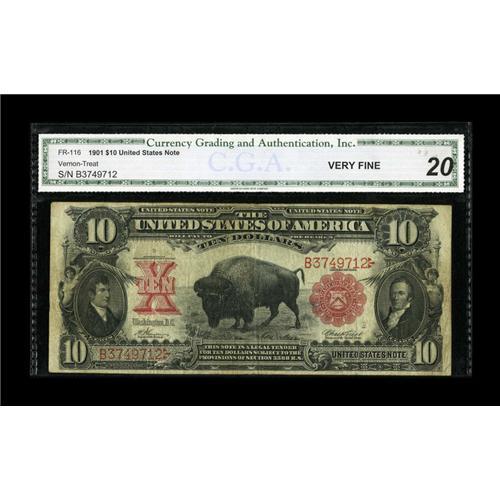 <B>Fr. 116 $10 1901 Legal Tender CGA Very Fine 20.</B></I> The moderately circulated paper is solid and free of distractions.<BR><I>From The Collection of Greg Southward</B></I><BR><BR><b>Shipping:</b> Coins & Currency (<a target="_blank" href="http://www.heritageauctions.com/common/shipping.php">view shipping information</a>)