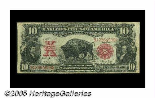 <B>Fr. 116 $10 1901 Legal Tender Fine.</B></I> Five of the nine Bison Friedberg numbers are more populated than Fr. 116, with this example coming in contact with only honest circulation that left it with a very pleasing look.