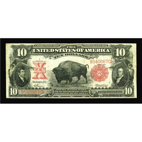 <B>Fr. 116 $10 1901 Legal Tender Fine+.</B></I> This is a tougher Bison Friedberg number with this example showing one edge tear that penetrates the frame line.